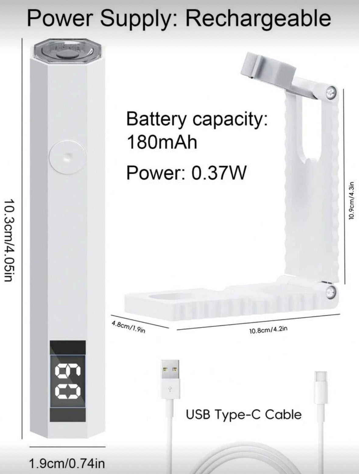 Mini lámpara de uñas led con batería ,base y cable usb para cargar