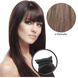 Las extensiones cosidas de pelo liso ofrecen una amplia gama de tonalidades que se adaptarán muy bien al color de tu pelo y le darán una apariencia natural.